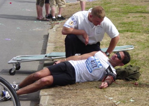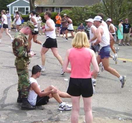 runner drops out with calf cramps |