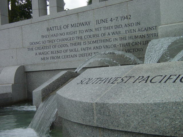 | One of our first stops was the new WWll Monument. There is always controversy surrounding any addition to the present monuments. It has taken its' rightful place and blends smoothly into the Mall. |