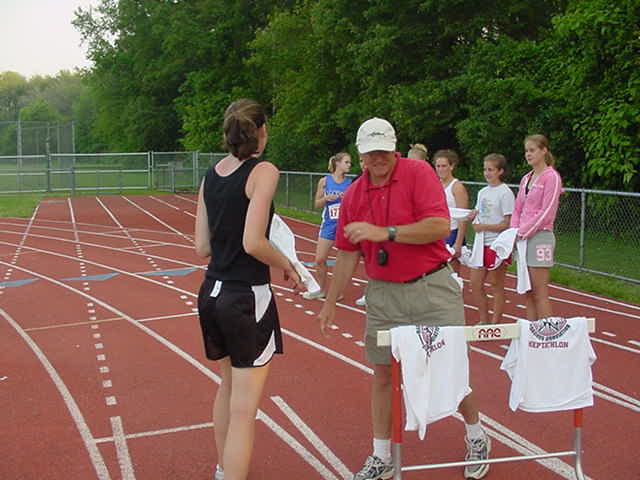 Estey presents T-shirts to the top finishers. |