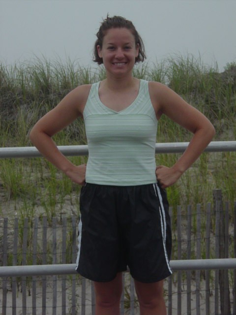 Every morning of her week of vacation Mandy Hafner could be seen jogging the boardwalk from 21 st street to 5 th and back. A recent convert to running, she took the time to answer questions about her newest passion. When did you start running? Oh, just about two and a half years ago. I decided I needed more exercise so I started running on and off. Nothing before that? Not really. I have to admit that I tried out for the school track team for a day. There was this boy I really liked, Jon Taylor, who was on the school team. The first day practice was in the rain and I never went back. I figured he’d have to stop sometime and who knows! Any other high school sports? I was a cheerleader. Didn’t they make you run? Sure, but I usually found a way out of it. So what changed? After I graduated from college I needed more exercise and knew I had to do something and running seemed like the best idea. Have you seen any changes? I have a lot more endurance now. I can go further distances and I think my running form has gotten better. How has it affected your health? About a year ago I went to give blood and my blood pressure was 160 over 100 or more. There’s a history of high blood pressure in the family. I said to myself “ You are only 27! This isn’t good!” When they rechecked it, it was even higher. I immediately went to the doctor and was put on medication. Since then I’ve been more consistent in running and am on a whole-food diet. I try to stay away from processed food as much as possible. I always had a good appetite but it used to be mostly junk food. Now I eat a lot better. I’ve lost 25 pounds, I’m off medication and my blood pressure is around 117 over 75. How many miles do you run a week? Usually around 8 to 10. I have to get up early and run before work. How about this week? The first day I went down to where the boardwalk turns and back. I was surprised to find out how far it was. (editor’s note: from where she is staying it is four miles round trip). I’ve been doing it everyday. And what do you think of that? I feel great. Mandy Hafner grew up in Pittsburgh PA and moved to California during high school. Her one-day track inspiration, Jon Taylor, stopped running after high school so she has caught back up with him. They now reside in Asheville, NC.