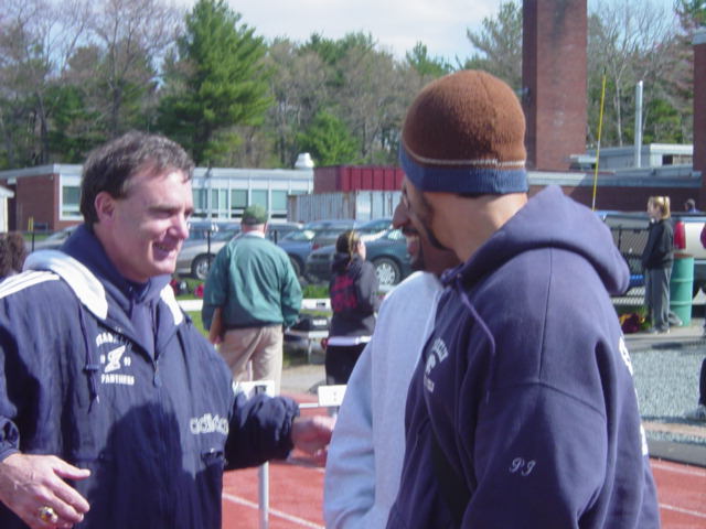 Meet in and meet out Marcus Vaughn brings both a high level of ability with a high level of sportsmanship. Whether you're a freshman girl from Foxboro or a senior boy from Canton he'll be pulling for you. From the Kelly Relays to the New Englands MV represented the league with style. Even before his own races he's out there plugging for everyone else. He just loves track! |