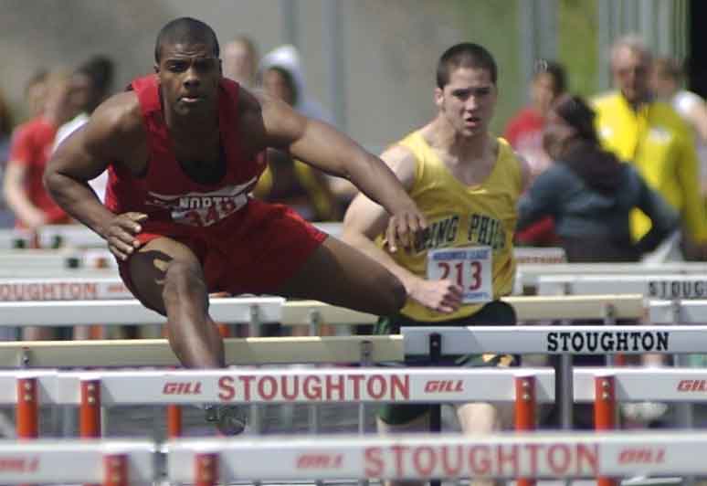 | Marcus may be more fashionable and he holds a faster hurdle PR, but I'm not sure he could take an open-field tackle from Robbie. Robbie doesn't pretend to fill his older brother's shoes. He brings his own size 12's to the track. If you say he doesn't live up to Marcus's reputation Robbie will kick you in the butt with them. I have to laugh at the DyeStat chatter that questioned why he was league MVP. Simple! Nine coaches vote and Robbie got the majority. They must have seen something. The fact that he represented his team at the New Englands despite the fact that Shriner football commitments could have deterred him speaks volumes about his investment in his team. |