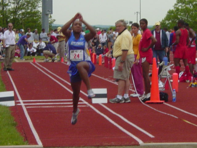 Dian Weaver on her way to a triple jump 2nd place.