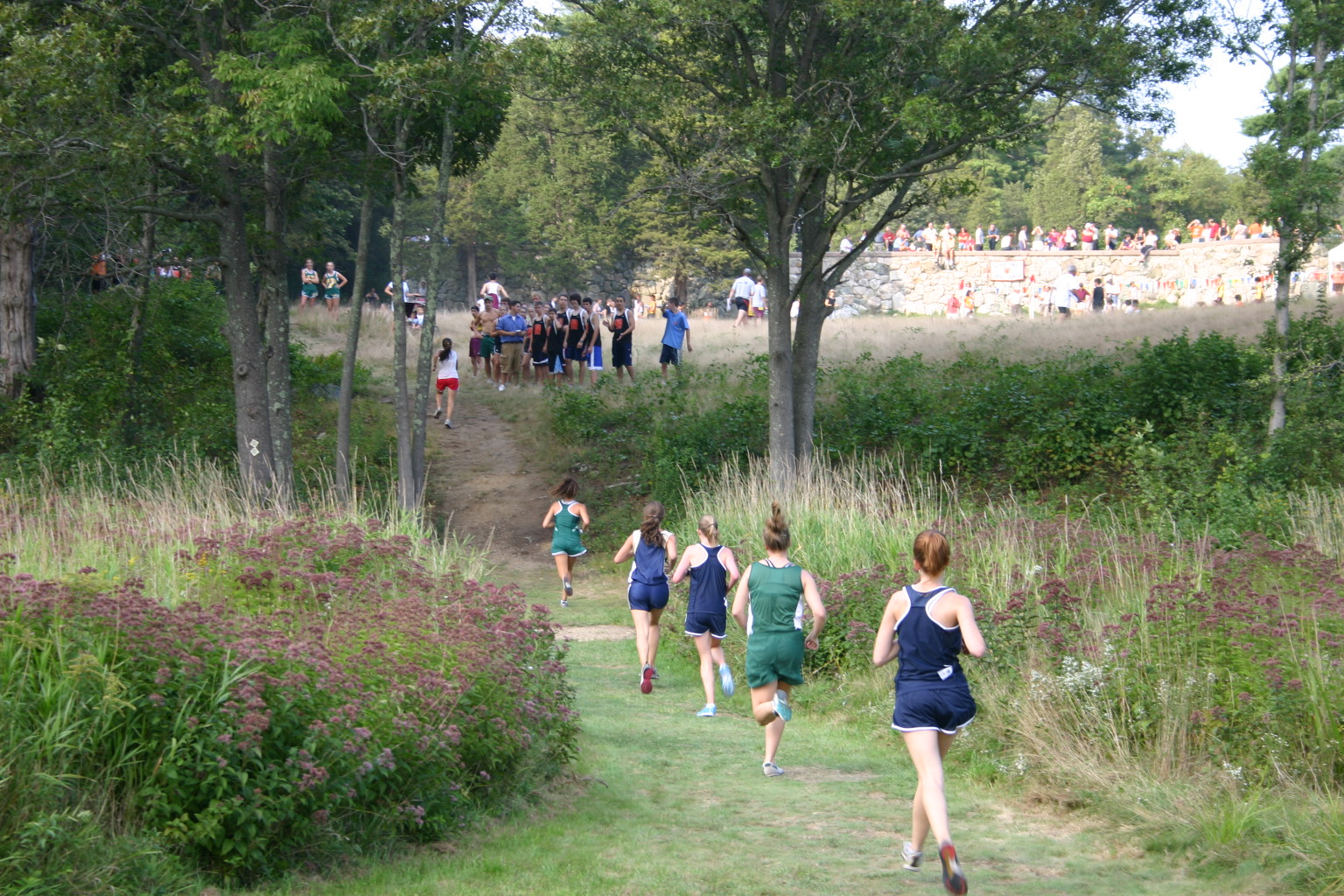 | Fans and teammates line the start |