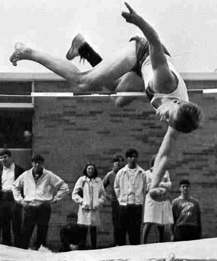 Dwight Estey clears the bar at 5'11 vs. Attleboro. |