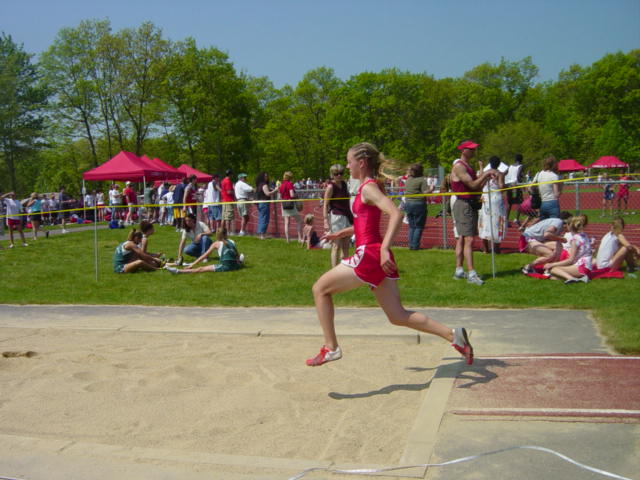 | Outdoor Track - In outdoor track Leah was North Attleboro's leading scorer in 2003. She placed in the Hockomock League Championship in both the 400M and triple jump and ran third leg on the league championship 4 X 100M championship team. As a member of the 4X100M Leah went on to place 5th in the state finals and 7th in the New England Championships. Leah was a member of the 4X100, 4X200M and long jump relay teams that placed first at the State Class B Relays. She is a member of the school record teams for both the 4X200 and long jump relay. Leah capped her sophomore season by being named the team MVP. She has also been honored as a Sun Chronicle and Hockomock League All-Star. | |